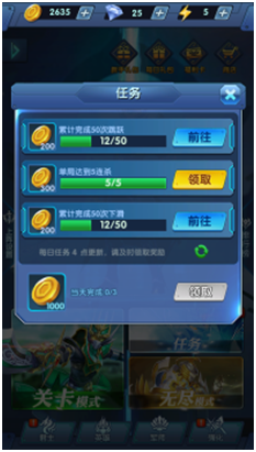 二、剧情闯关和无尽模式,闯关中可以拾取金币,进入boss副本更是有大量金币可获得。拿到三星也可以兑换星星宝箱奖励。无尽模式中只要技术好,金币完全可以拿到手软,同时还可以每天领取排行榜的奖励