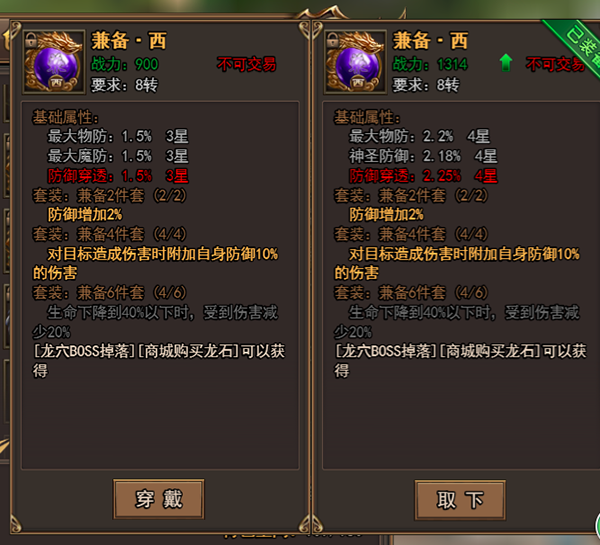 在《无双屠龙》中,单单依靠等级的提升是不够用的,装备可以为提升角色战力提供非常大的帮助,尤其是攻击力属性和防御力属性上面,只要搭配上适合职业的整套装备就能发挥出职业的最大优势。