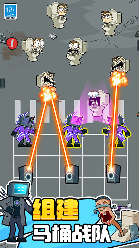 3、合成与塔防的结合:游戏中,玩家需要通过合成马桶人来建立防御,这种独特的玩法让游戏充满了策略性