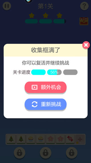 3、你需要通过点击棋盘上图标,3个相同的图标即可消除;