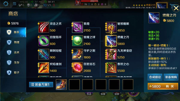在游戏中,玩家可以在对战前自定义出装顺序,根据不同局势以及个人出装喜好,在备战系统中设置个性装备方案,在游戏对战中,也可以在商城预购装备,根据战局灵活调整出装。这样的设定使得每位英雄都能在玩家手里绽放自己的光彩,不必拘泥于英雄本身类型设定,最终和队友更好的配合并取得胜利。