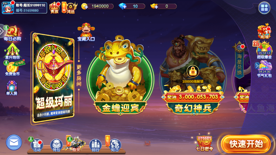 九层妖塔、藏宝图等特色玩法超吸睛,操作简单小白秒上手。实时联网能和同房间玩家交流捕鱼经验,捕获金蟾、金鲨还有高倍率爆金福利,夏日和朋友组队深海捕鱼,趣味十足!