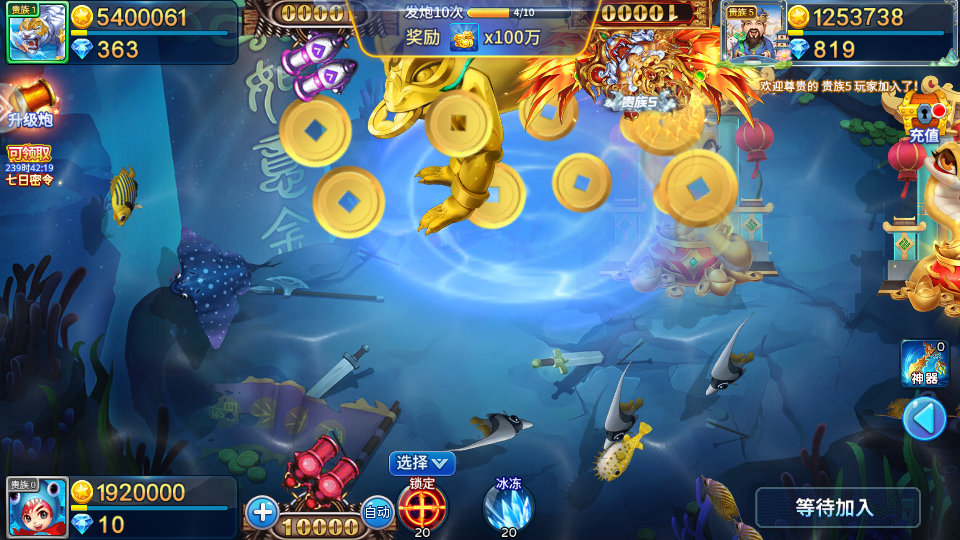 在炮台倍率低时,优先攻击密集小鱼群,利用散射特性批量捕获。