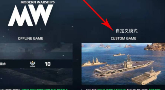 1、打开现代战舰游戏,点击进入战斗右边的按钮。