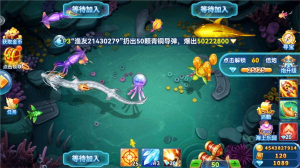新手领任达华专属礼包直接起步,火炮资源不用愁。3D鱼群游起来特真实,小乔、曹国舅这些国风BOSS超有新意。鱼潮来时手机震感超沉浸,锁定技能一放,抓鱼又稳又爽,每日签到福利还能续上资源!