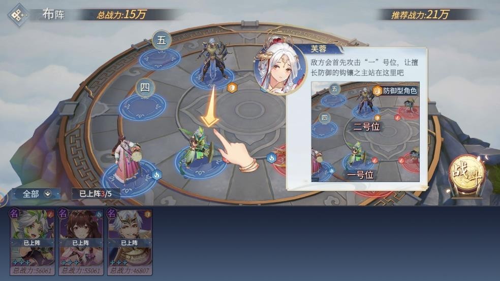 5、合理布置阵容,防御型英雄适合站在“一”号位,承担伤害,作为队伍的坚实盾牌。