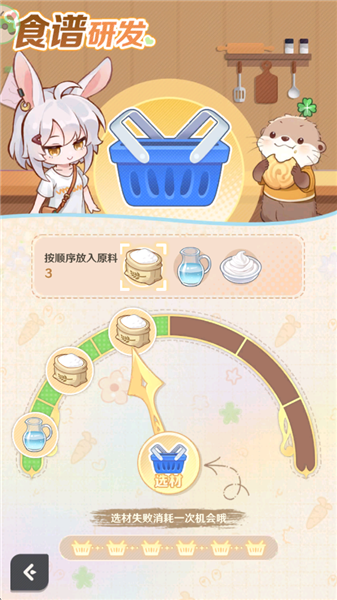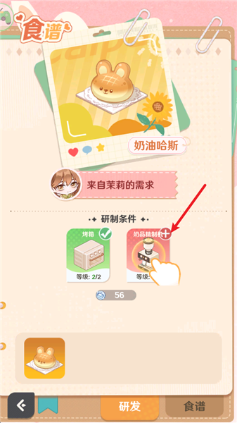 3、添加设施之后即可开始研发,按照顺序选择对应的食材。