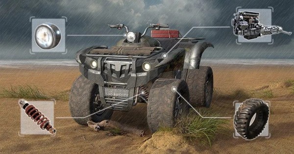 3、成功找到背包中的零件后,将其拖拽到对应的全地形车部位。