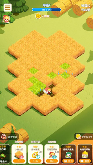 游戏前期升级节奏爽快(50级仅需5分钟),但后期挑战难度陡增,导致玩家陷入重复刷级的疲劳循环。转生后作物再生速度差异(如包心菜慢于小麦)进一步暴露数值设计问题,建议优化升级曲线与资源产出比例。