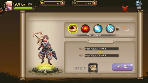 技能的升级,能让我们不仅提升打怪速度,更能让我们的攻击,在完成一定的攻击次数后,产生一次叠加伤害。就比如显示(属性:攻击5次造成100%伤害)意思就是说我们连续攻击五次,第五次的攻击伤害就能叠加到100%!