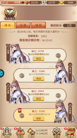 7、当神职到达“玉清至圣”后,点击【征战】便可参加竞技场比赛