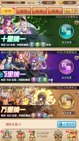 6、我们还可以通过【招募】来收集更多的角色,提升阵容的整体实力