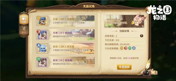 如果你觉得自己的实力和技巧足以挑战SR难度的龙晶试炼,也可以刷新当前龙晶试炼——刷新一定次数,必出SR难度试炼!