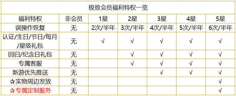 3、星级福利:星级越高,享受更多个性化福利与服务。尊贵会员各星级福利简要整理如下。