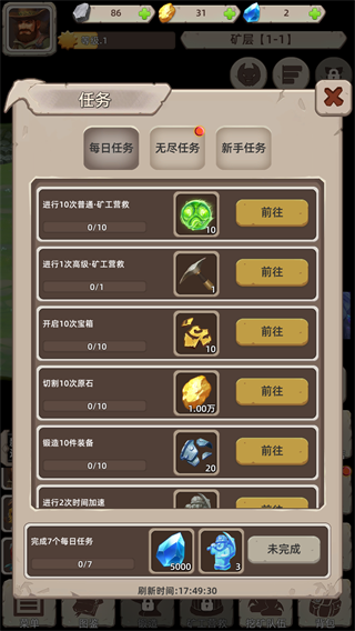 1、主打模拟挖矿和战斗的游戏,玩家们能够在里面享受挂机作战的游戏玩法,还有每日任务等待玩家的完成。