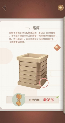 每通关一个关卡,解锁对应榫卯构件并收入“馆藏”。支持360°自由旋转、逐层拆解,类AR视觉呈现组合原理,在游戏中轻松掌握木作技艺与传统工艺文化。