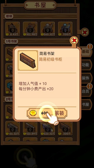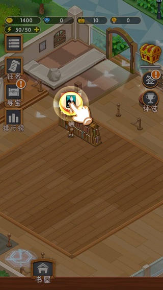 2、点击“书屋”,在这里建造基础设施,先购置一个简易书架。