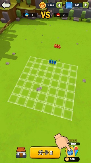 战斗开始,玩家可以在指定的方格内部署兵力,虽然游戏是作为一款单机模拟策略游戏存在,但可体验的玩法有很多,棋盘格局,不仅能够自由部署兵力,还能通过闯关来叠加资源。