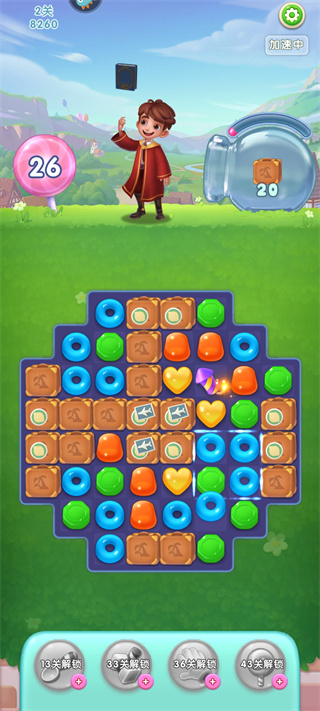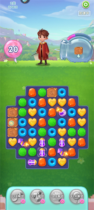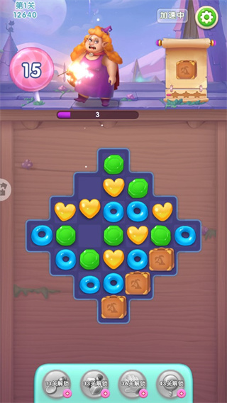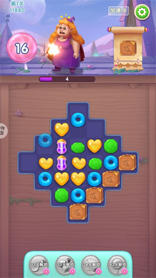 通过与胖女巫斗智、和小怪兽斗勇等搞怪互动,游戏在消除挑战中融入了幽默轻松的剧情设定,让闯关过程更具代入感。奶茶店、蛋糕店等场景也隐含了轻社交属性(如角色互动),使得游戏在单机玩法外多了一份生动感,适合追求休闲娱乐与轻度叙事的用户。