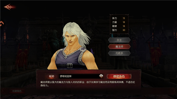 2、接下来,创建你的角色信息,选一个心仪的职业。