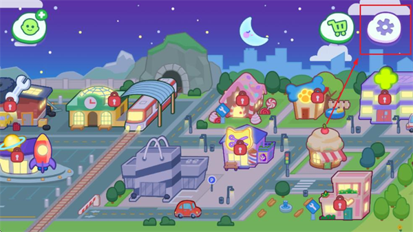 1、在本站下载并打开汤姆猫小镇,点击主界面右上角设置