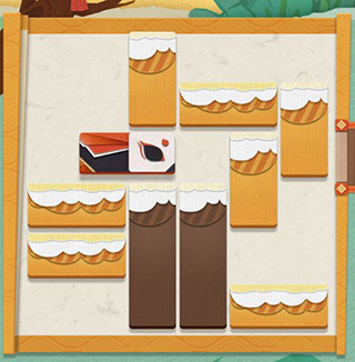 3、按照木块长度方向,移动小木块,最终让云雀能够突破障碍顺利逃脱。