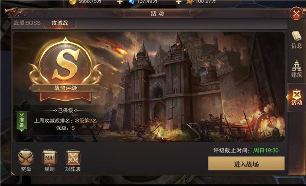 4、并且,每周日晚上8点半是战盟攻城战,有时间的玩家一定要记得参加,这个活动不仅奖励丰厚,还代表着战盟的实力。盟主要提前通知成员记得准时参加。必要时,可以事先分组,安排组长带队,分别攻打各个要点,这样在遇到势均力敌的对手时,更容易取胜。