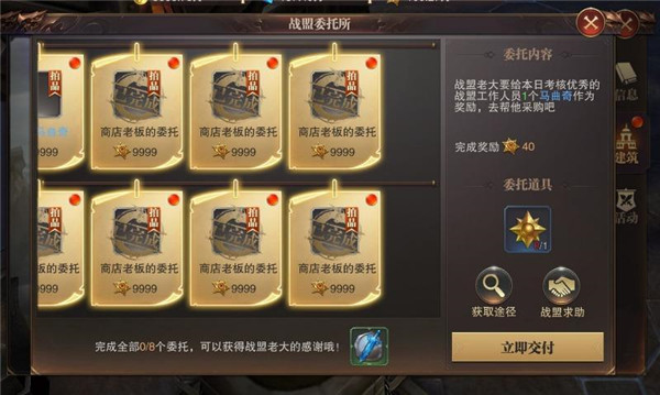 2、平时注意收集委托所可能需要的道具,毕竟自己完成任务的奖励更高。若是实在弄不到道具,再求助于战盟成员