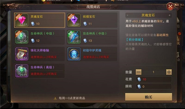 玩家只需要花费1000积分,即可从积分商城买到战盟契约,使用战盟契约可创建战盟。当然玩家也可以选择不自己创建战盟,直接加入他人已建立好的战盟。目前,退出战盟是没有冷却时间的,也就是说可以随时更换战盟。