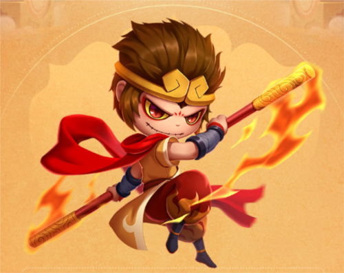 既然是西游主题的游戏,主角怎么少得了齐天大圣孙悟空呢。孙悟空的被动技能是他最拿手的72变,即受到伤害又可能变化分身,分身会跟随本体一起释放技能,但是释放完技能就消失了。