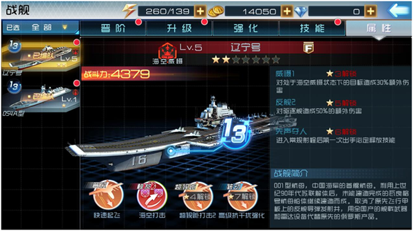 4、3星解锁特性Ⅰ,各战舰特性和效果不同;