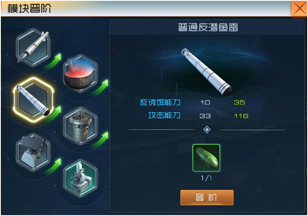 2、模块晋阶为a阶,战舰最高等同晋阶到a阶。