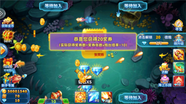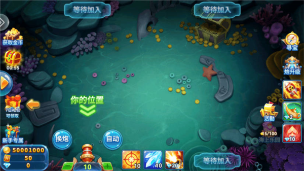 支持万人同服实时对战,内置段位排行榜与战术频道。通过"渔获积分"比拼技术,争夺捕鱼王称号与实物奖励(腾讯币/手机充值卡),构建"休闲娱乐+硬核竞技"双轨制游戏生态。