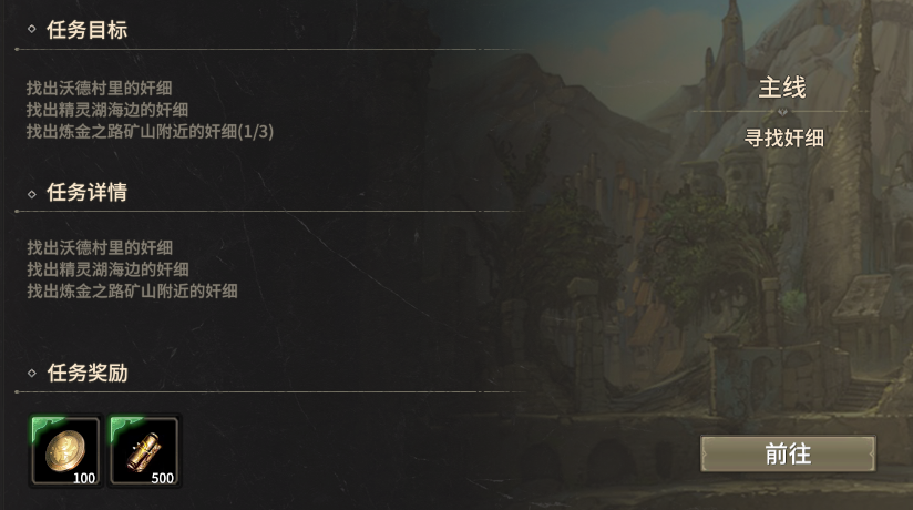 炼金之路矿山附近的奸细位置为(199.241),需要注意的是奸细位于轨道桥上,达到该位置发现“可疑的士兵”,与其对话即可触发战斗,击败对方则完成“找出炼金之路矿山附近的奸细”任务。