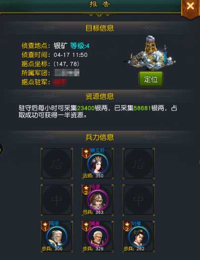 一个高等级的银矿可以每小时为我们提供大量的银两,而一个正在被人开采的银矿在被我们攻打下来之后,更是可以直接夺取对方当前开采量一半的银两,这种方法需要耗费很多精力去寻找,我强力推荐另一种快速获得银两的方法,那就是挑战。