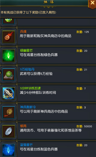 4、 通过横扫挑战里面的战役可以非常有效率的获取银两,而过关斩将中每过五关得到的宝箱中更是可以开出大量银两,并且过关斩将也可以使用横扫,还不用损兵。如果这些方法用完后还是缺银两的话,我们可以在商店里利用元宝等货币来购买银两。商店: 过关斩将商店: 竞技场商店: 开启军功宝箱也可以获得大量银两