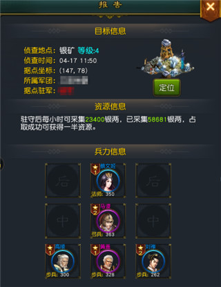 3、一个高等级的银矿可以每小时为我们提供大量的银两,而一个正在被人开采的银矿在被我们攻打下来之后,更是可以直接夺取对方当前开采量一半的银两,这种方法需要耗费很多精力去寻找,我强力推荐另一种快速获得银两的方法,那就是挑战