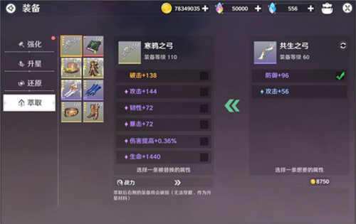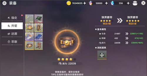同样重复的类型可以用来进行升星,消耗的是同样装备提升星级,星级提高之后属性自然会更强,多余的千万不要随便丢弃,可以拿来当做材料。