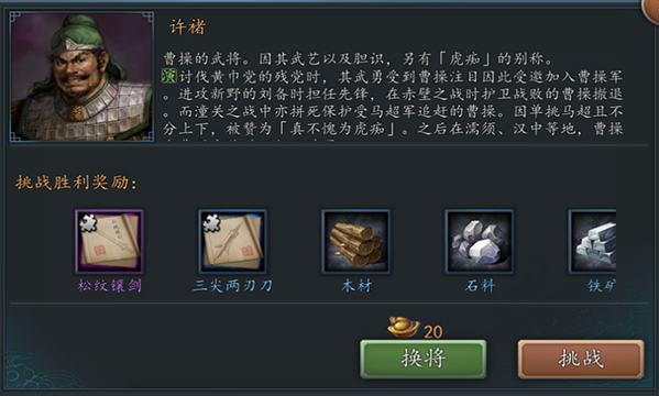 由于挑战副本不会损失兵力以及消耗兵器,我们可以为部队装备兵器后进行挑战。使用酒类道具可以有效地提高部队的作战能力。当部队实力和副本难度差距不大时,可以考虑通过使用酒类道具来增益部队,早日获得首通奖励。如果该难度下,敌方阵容过于强大,也可以考虑点击“换将”按钮,获得随机更换对手的机会。挑战名将副本,推荐各位主公在1倍速度的情况下进行手动操作,把计略和武将技能尽可能留给重要对手,计略最好以控制计略为主,以增加胜算(推荐计略:火牛阵,水淹七军,草木皆兵)。