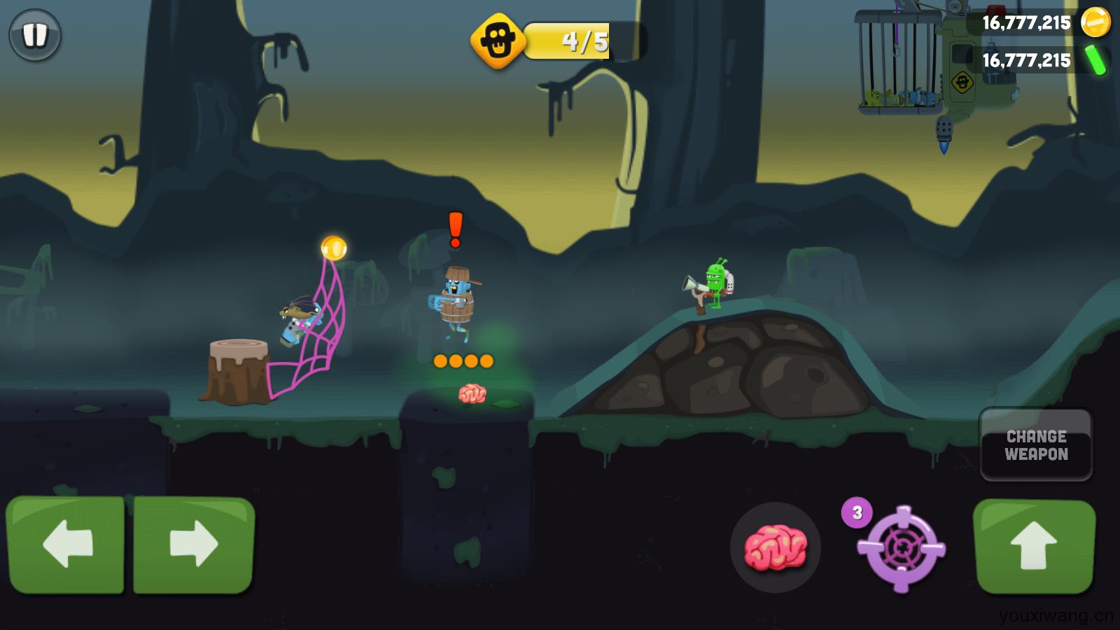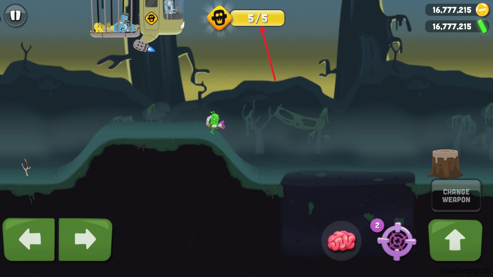 6、每一关都有着指定数目的僵尸,全部抓住后即可过关。
