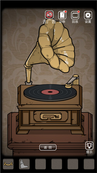 2、随后玩家将留声机底下的柜子给打开,然后可以获得唱片,再把唱片给放到留声机上听,等待一段时间将会得到报纸碎片