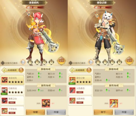 该部分主要包括战力、等级、属性等。其中,属性分为基础属性与极品属性,而基础属性,包括攻击和生命等,直接决定了角色的战斗数值。极品属性,包括伤害加深等,更加偏向buff,能够在战斗时祝你一臂之力!