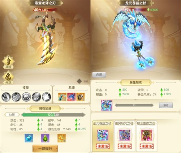 当角色等级达到125级后,可以通过寻宝抽奖获得神兵。神兵可以增加大量的战力,并且有额外极品属性的加成。悄悄透露一下,寻宝的幸运值达到666(提升500%的中奖概率)的时候,就是你一发入魂的时候。