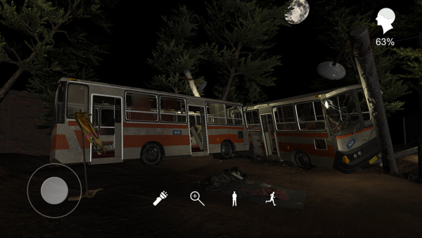4、就来到了这个荒郊野外的地方。周围非常的阴暗,你来到这里观察发现公交车还在,但是车上的司机和人们都不见了