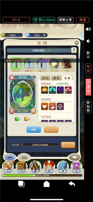 3、关于宠物满档光环,一个宠物开满光环大约5000钻石,按需要来。攻宠不需要开精神光环,同样的魔宠不需要开攻击光环。