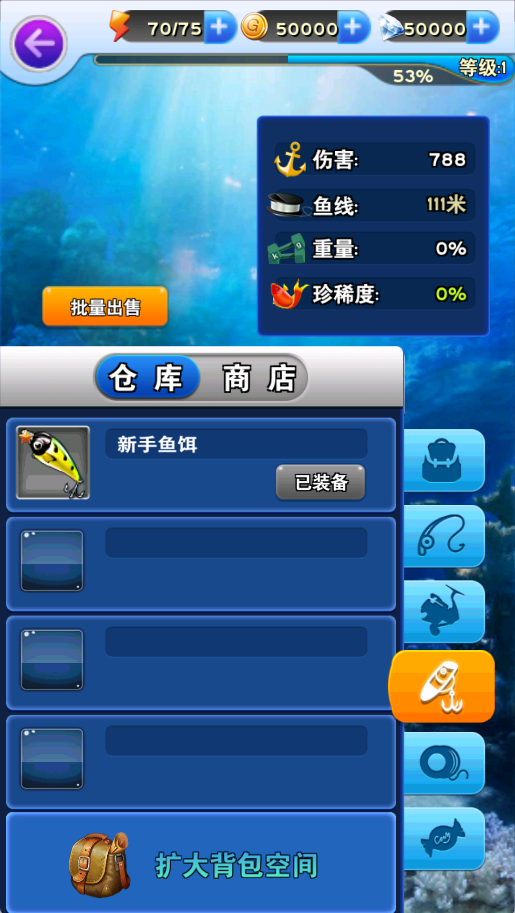 8、装备支持升级与改装,进一步强化属性,助力钓大鱼更轻松!