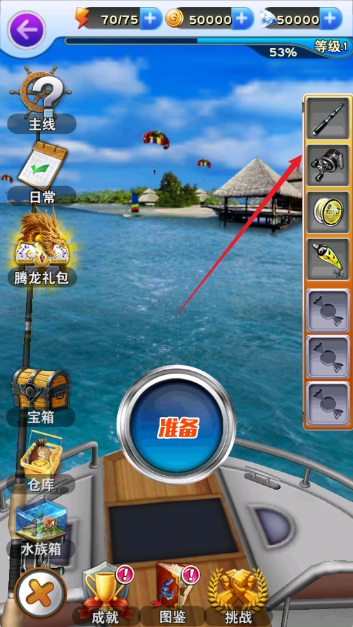 1、进入全民钓鱼游戏后,点击【准备】开始钓鱼。