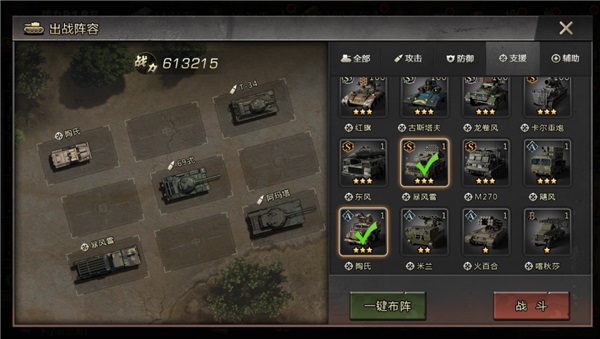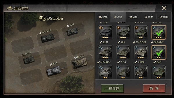 核心:布雷德利+ M270,布雷德利持续回复能量。M270释放大招时,其它战车增加能量。两辆战车都能辅助整个队伍的能量恢复。
