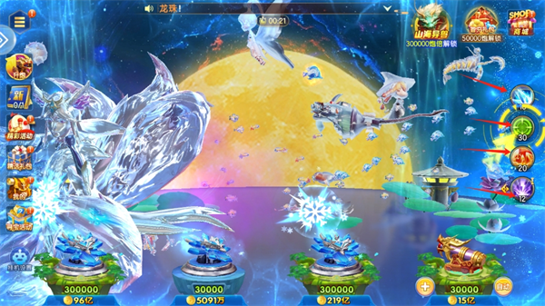 赛季争霸:以赛季为单位,玩家通过捕鱼积累积分,参与全服排名。每个赛季都有独特主题和奖励,如限定炮台、稀有鱼类等。