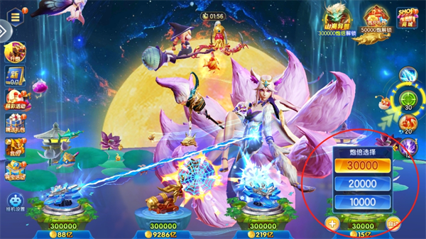 BOOS鱼:像洛神、苏妲己、天命罗盘等等。分值可达几百上千分。神被击中倍率最高8700倍,苏妲己携带大量金币。